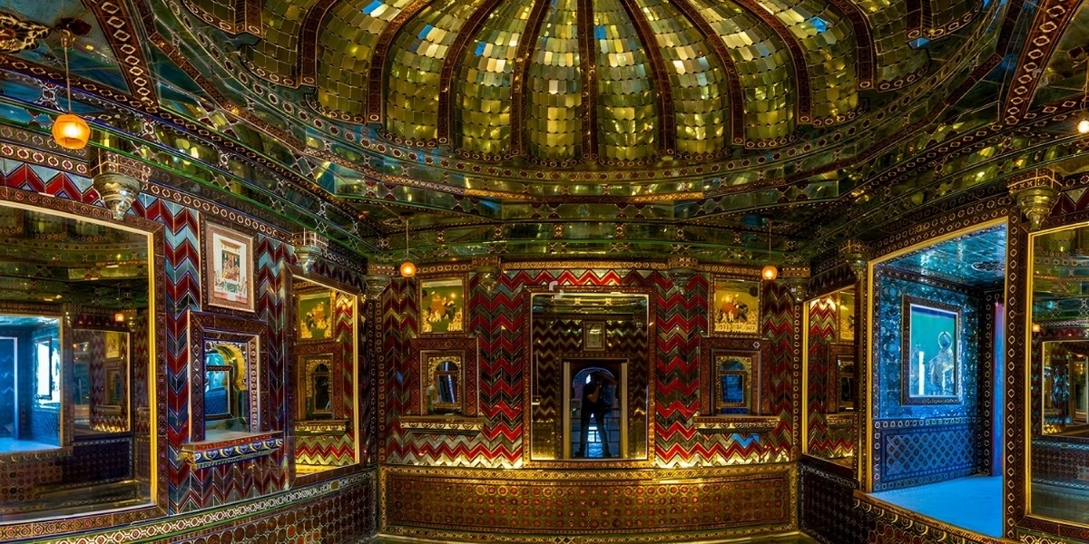 The ambiance is further enhanced by traditional furniture, colorful fabrics, and calligraphy, giving visitors the impression of stepping into a royal palace. The exterior of the building features domes, fountains, and manicured gardens, providing an elegant setting for photoshoots and gatherings.